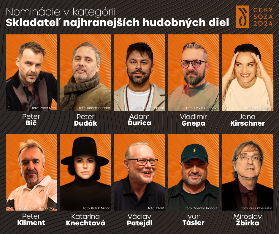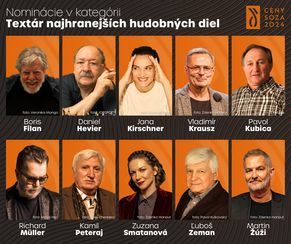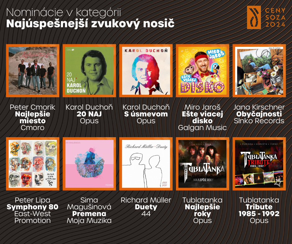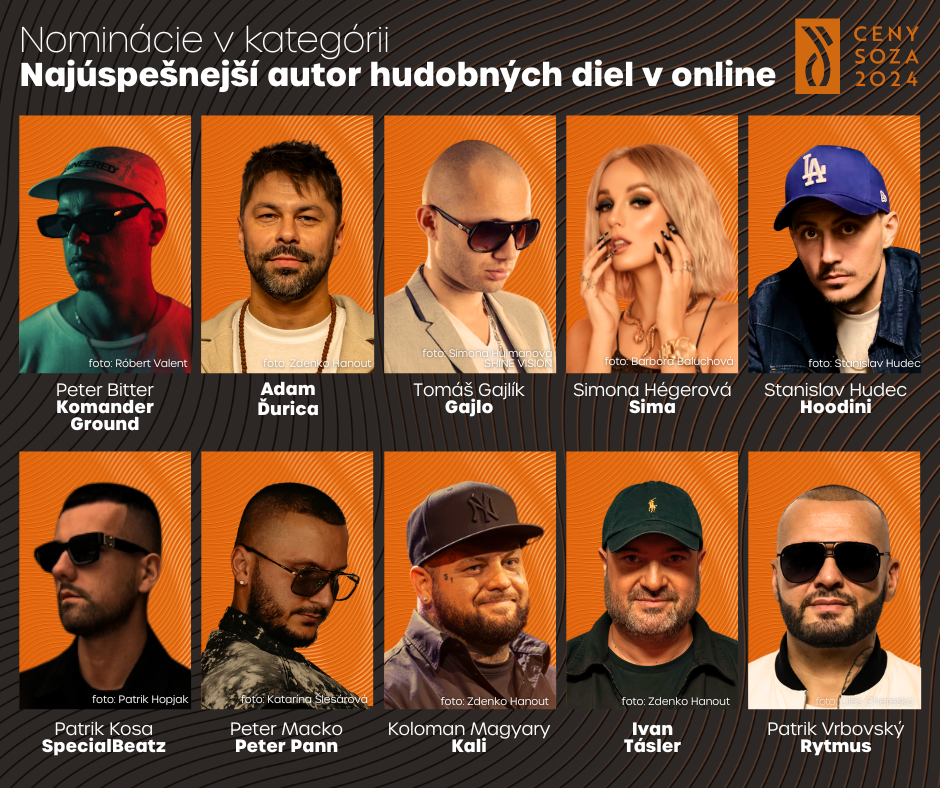 Slovenský ochranný zväz autorský (SOZA) zverejnil zoznam najhranejších autorov a skladieb za rok 2024. Najviac nominácií, spolu päť, získala Jana Kirschner, ktorá bola nominovaná v rámci kategórií Skladateľ najhranejších diel, Textár najhranejších diel, Najúspešnejší zvukový nosič a zároveň získala aj dve nominácie v kategórii Najhranejšia skladba. Na druhom mieste sa so štyrmi nomináciami umiestnil Adam Ďurica.