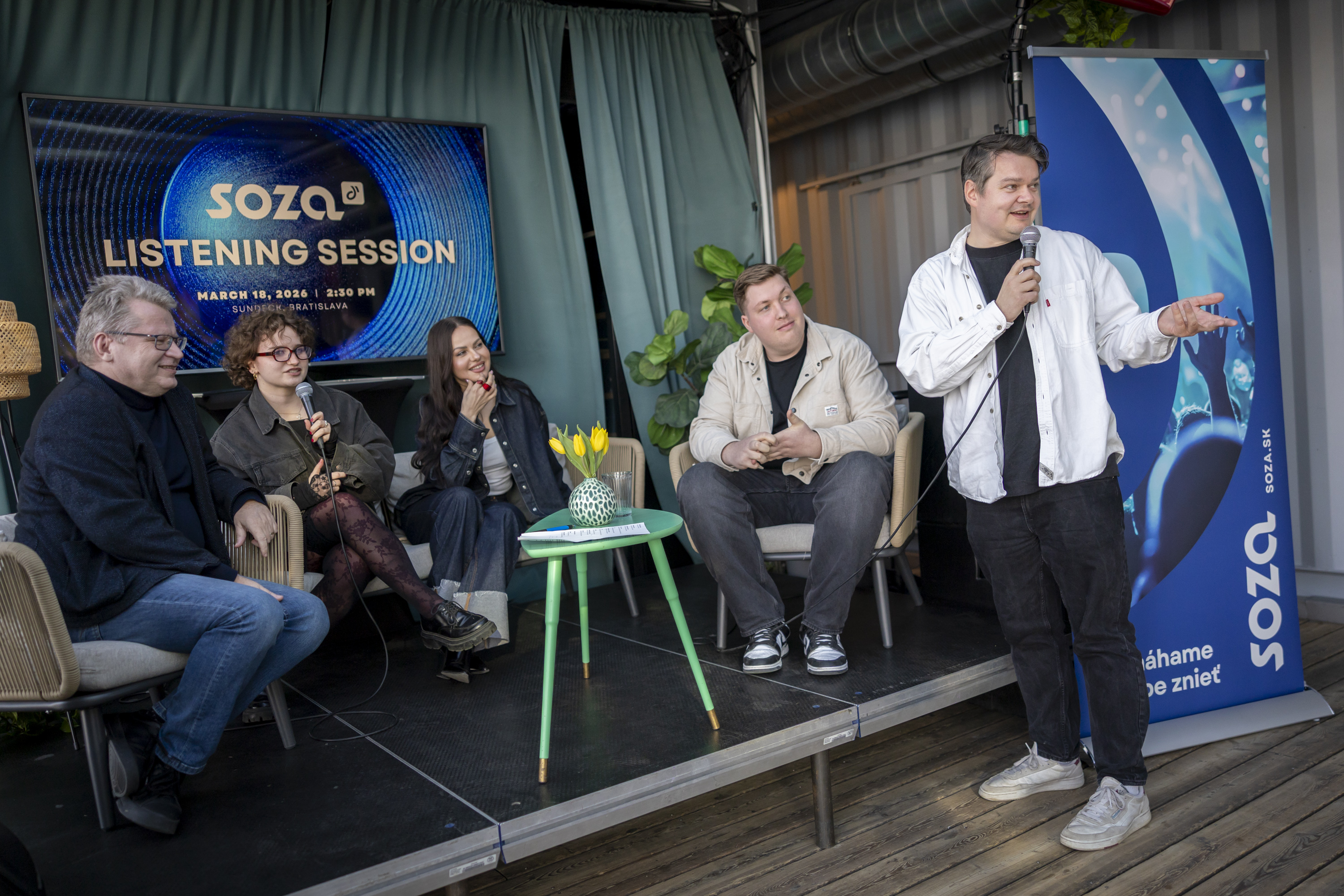 Podujatie moderoval hudobný redaktor, producent a mediálny konzultant Juraj Čurný spoločne s českým hudobníkom a songwriterom Janom Vávrom, ktorý je zároveň spoluorganizátorom campu. „SOZA mladým hudobníkom ponúka niečo vzácne – priestor na tvorbu a rast. Skladby, ktoré sme si dnes vypočuli, sú dôkazom toho, že na kvalitnej slovenskej hudbe jej naozaj záleží," hovorí Čurný.